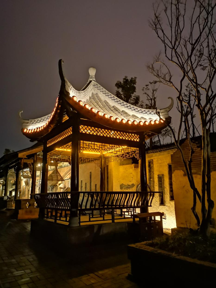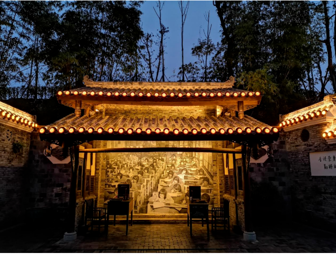 在保护瓦片的情况下,采用嫦娥奔月 · 瓦当灯和龙头 · 瓦当灯均匀洗亮屋檐,光线营造细腻而丰富的视觉层次,灯具隐藏与建筑完美结合,强调“见光不见灯”,细腻柔和的光线在暖白色和暖黄色的色调中传递着轻盈与庄严之感。