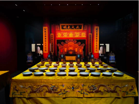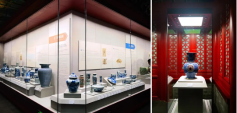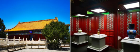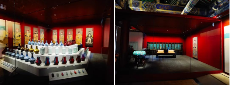 武英殿室内空间利用间接照明展现金碧辉煌的殿体建筑;运用重点照明,烘托出陶瓷的釉色纹理。同时,运用人工光与自然光的有机变化组合,使得展厅达到主题突出、层次丰富、明暗相宜、和谐优美的效果。