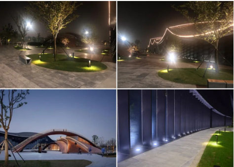 整体来说,为了凸显江南水乡温馨、静谧的特点,乌镇在夜间亮化色温上采用色冷暖结合,但以暖光居多。为在夜间给人一个良好的视觉享受,设计团队以人的视角为主线,对光进行布局和把控。针对乌镇互联网之光的外形,运用暖色系灯光赋予建筑景观灵气,彰显现代简约之美和乌镇水乡之美,通过多功能庭院灯、地埋灯、射灯、柔性灯带的组合,达到勾勒整个建筑优美线条、点缀建筑各立面的效果。在此次照明设计实现过程中,通过智能控制与时控器控制系统实现平日、节日等不同的场景效果。做到“少而不简、多而不繁”。超强的散热性能保证了灯具的光衰,亮度处于零光衰状态。此外,灯具整体结构均采用可回收再利用的铝合金及PC材质,做到了绿色照明、环保照明的目的。