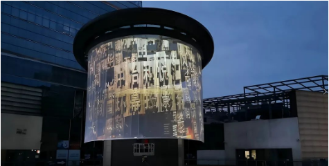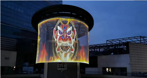 在中治和悦汇中庭环幕投影秀中,安恒采用4台自有品牌SECO AWP-10KB1F户外激光工程投影机侧投融合,在弧形纱幕上投射出清晰完整的影像,配合环绕立体音响,全方位输出音像,引爆现场热烈氛围。