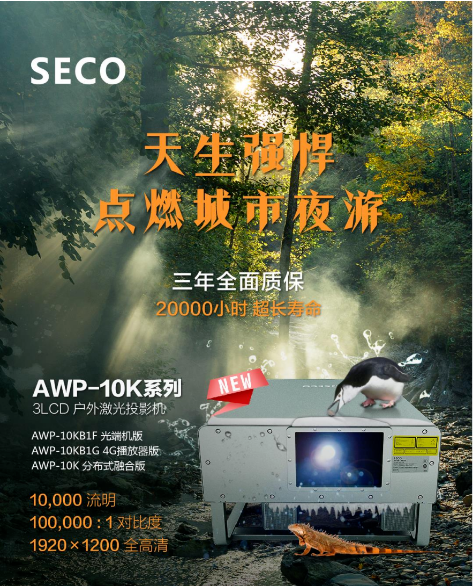 安恒自主品牌SECO AWP-10KB1F户外激光工程机凭借其高亮度、成像清晰细腻、防水防尘、使用寿命长、灵活安装的特性,成为了中治和悦汇商业运营重要的一份子。