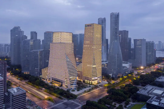 地上由三栋主塔构成,分为商务主楼、商务副楼、培训楼三座,是钱江新城城市天际线的重要组成部分,是一座现代化高端城市综合体项目。