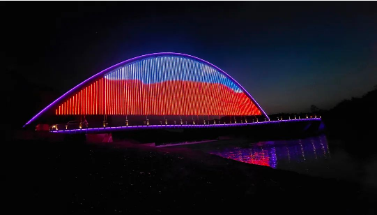为了更好的迎接亚运,吴山公园披上了一层色彩斑斓的外衣。考虑到吴山桥是一座网红玻璃桥,来此地打卡的游客也是络绎不绝,大桥两侧立面采用了明都创芯的D30点光源,以“点成线、线成面”的形式去展现。