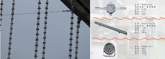 项目使用了钢丝绳的安装方式,上下用钢丝绳拉紧器和锁紧器固定,使灯具的线条更加直观简洁,施工也更加方便。明都创芯灯具防水等级达到IP67,阻燃等级V-0,抗UV等级4级,灯具安全等级达到3级,具有极强的性价比,在保证效果的同时,也能保证质量的稳定运行!第一时间将径山美好的人文、风景、特色以及径山人民对亚运会最好的祝福都以光的形式映入到所有人的眼帘。而桥身则采用明都创芯的洗墙灯和投光灯进行勾勒,配合流水般的灯光,将整座吴山玻璃桥完美的“S”型曲线毫无隐蔽地展现到所有人面前。
