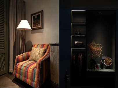 局部的圆形射灯换为WAC的方形灯具,使得整个空间显得明亮轻盈有生命力,给人一种会呼吸的宁静感受。