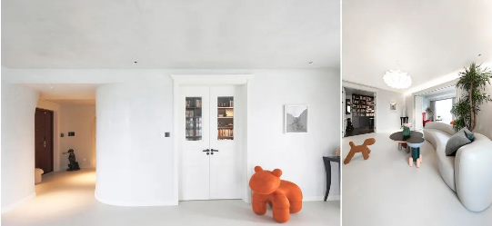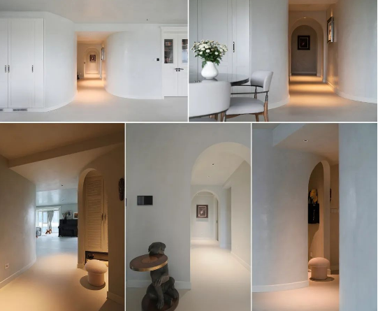 整个空间设计以白色为主,因此灯光的色温选3000K,为整个空间添加温暖的色彩