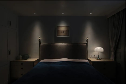 主卧的床头灯具选用的是WAC的深藏防眩灯具。