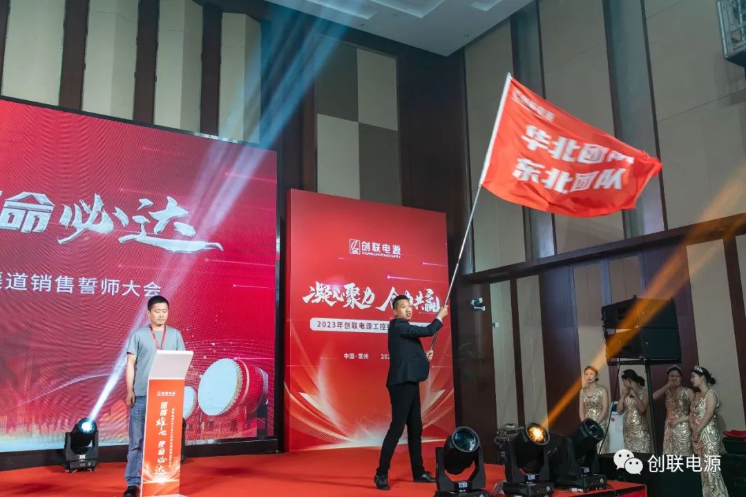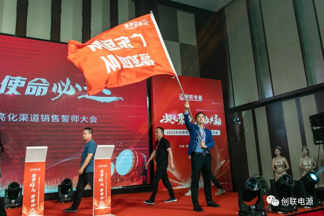 会议最后,由创联电源工控亮化渠道总监顾琦主持召开“2023创联电源工控亮化经销商誓师大会”,创联电源工控亮化各销售经理带领各自区域经销商在宣誓大屏下郑重宣誓,销售经理及各位经销商铿锵有力的宣誓,鼓舞着现场所有的参会人员!