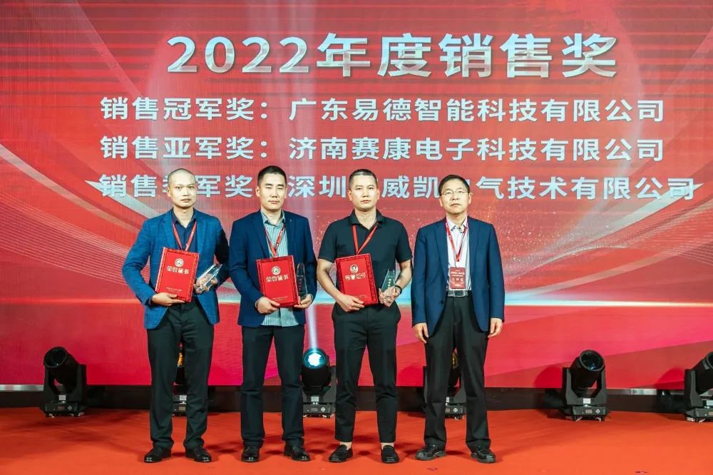 在本次经销商大会的重要环节——“经销商颁奖盛典”上,董事长唐景新、常务副总经理丁满凤、营销总监李建刚、董事长助理唐诚分别为经销商颁发了“2022年度销售奖”、“2022年度销售增长率奖”、“2022年度最佳新秀奖”、“最佳荣誉合作奖”,以表彰在过去一年各经销商们的突出业绩贡献和多年忠诚的合作,获奖经销商代表们一一上台领奖。