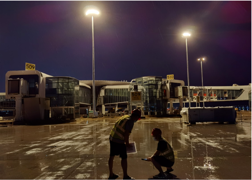 自2021年6月希达单光源LED高杆灯具投入深圳机场三期卫星厅停机坪照明项目使用至今,经过两年多的示范运营,在水平照度、垂直照度、照度均匀度、眩光值(GR)、投射距离等方面应用效果良好,达到了机场停机坪高杆照明设计及实际使用要求,低眩光,光分布均匀,无虚影现象,实现了节能、环保等预期效果。