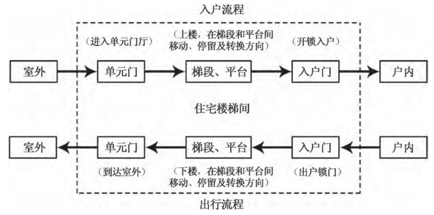 图1 老年人出入住宅楼梯间的一般流程