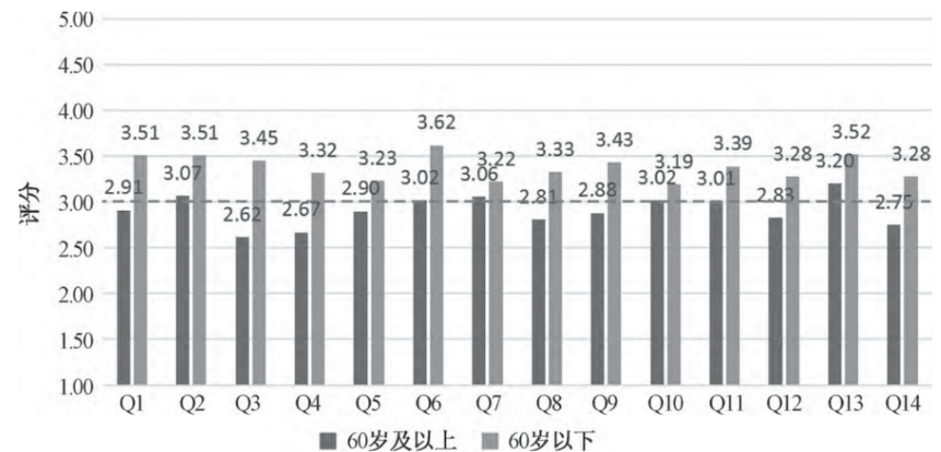 图6 两个年龄段人群问卷数据结果对比