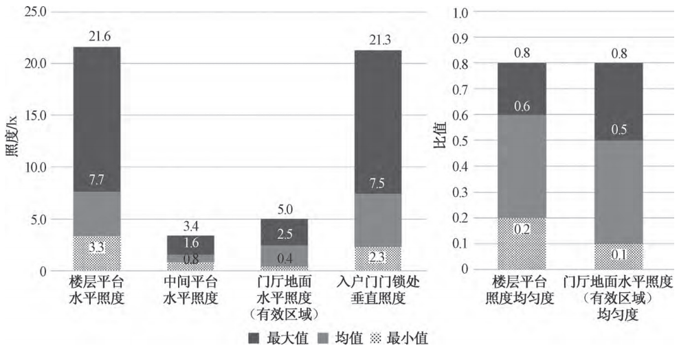 平台处、门厅处、门锁处照明指标统计结果如图5所示。