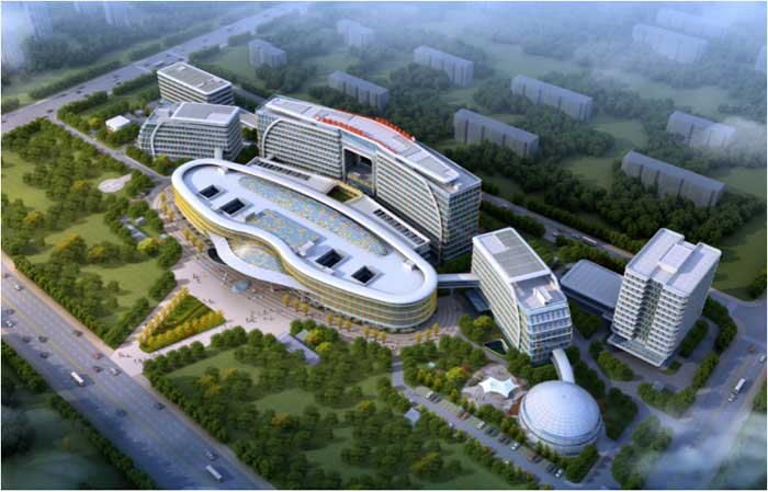 乌鲁木齐儿童医院位于新疆-乌鲁木齐市北侧的城北新区,项目基地呈长方形,南北长约197米,东西长约500米。建设用地面积95163m2。城北院区共有八大单体建筑,分别是门诊医技楼,康复保健中心,血液中心,感染中心,儿保中心,科研培训中心,能源动力中心,制氧站及汇流排、安检棚。总床位1200张,包括了儿童重症救治、康复、保健、传染病特色诊疗等功能,将成为新疆乃至整个西北地区功能最全、服务最完善的儿童诊疗机构。