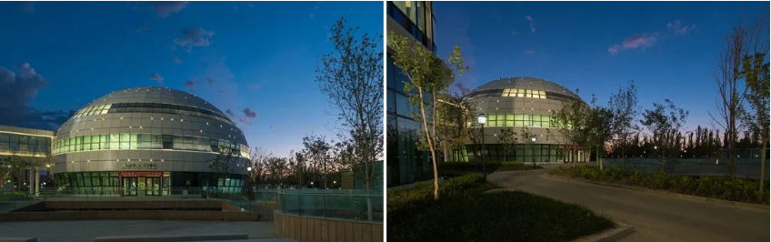 儿童早期发展中心建筑为球形形状,宛如天穹展望着未来,我们采用星光灯,通过控制,形成呼吸的缓慢不规则的变化效果,犹如星空一般闪烁,寓意着仰望星空对未来的渴望与探索期待。