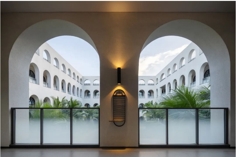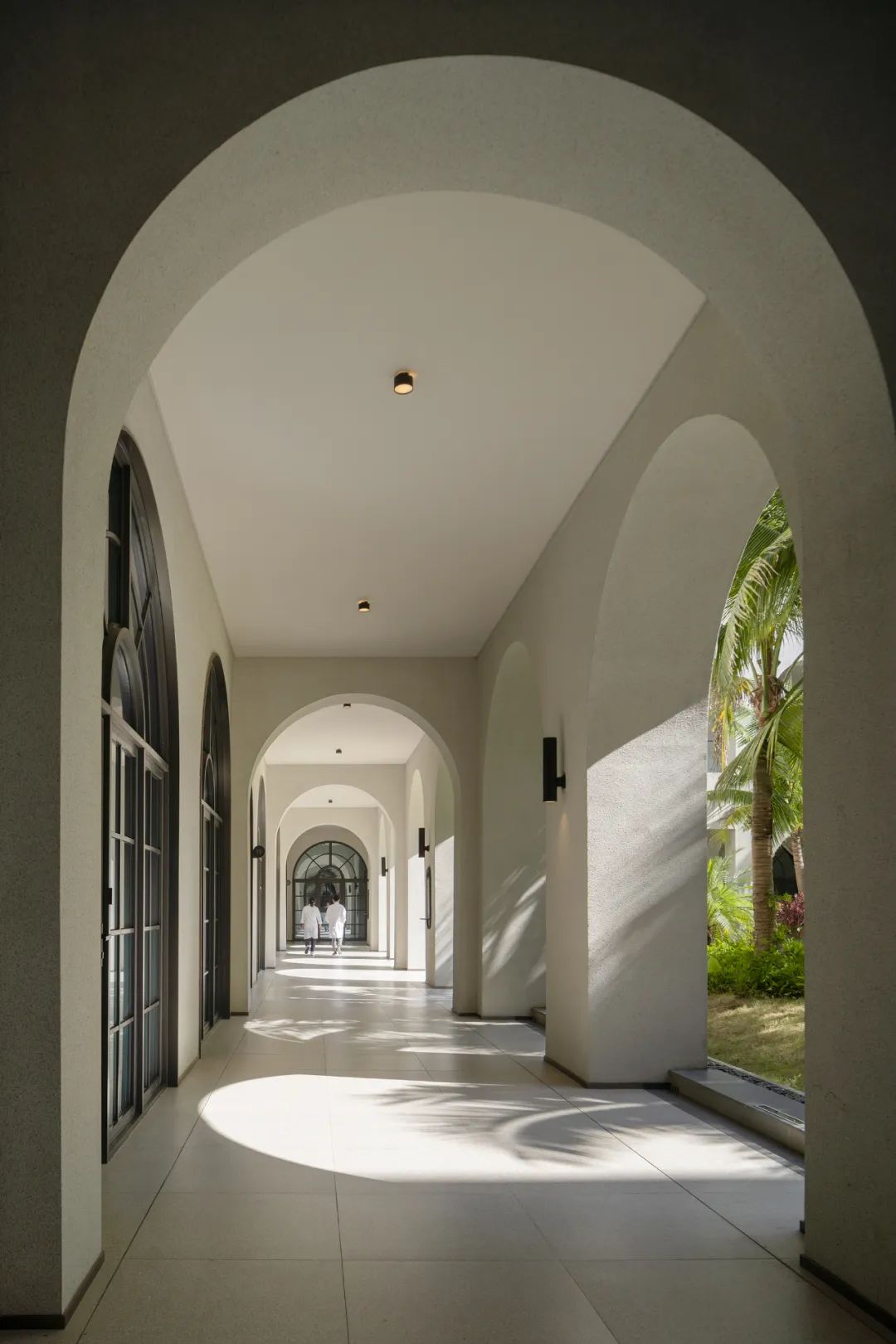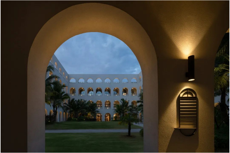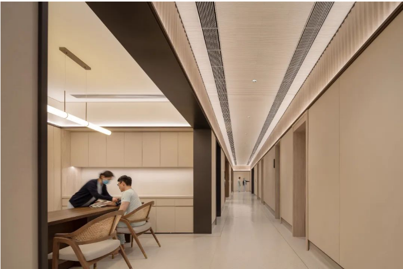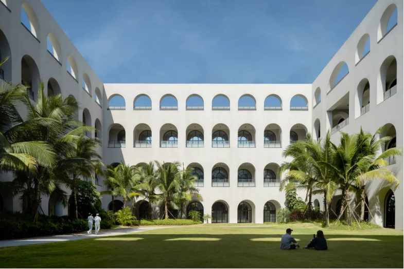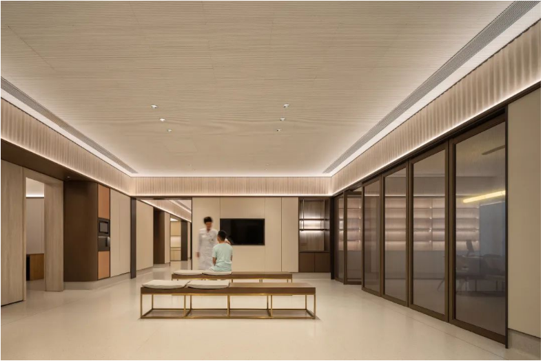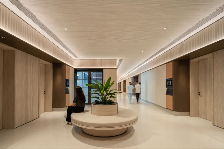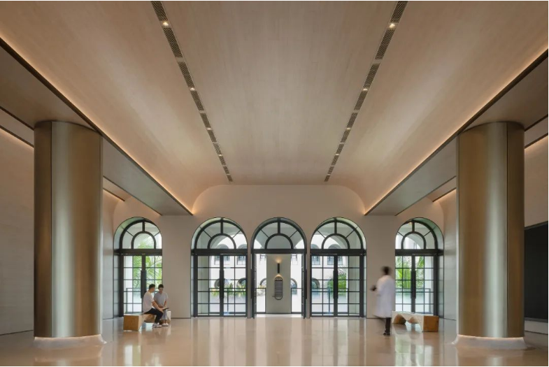Albert Schweitzer made significant contributions to humanity based on his worldview of respecting life. He also reminds us that life is a sacred gift, and we should always approach it with gratitude and reverence. Hospitals, as places with a profound mission towards life, provide a holy symbol and the utmost space for inclusivity and compassion.融合中国「颐养」的智慧,坐落于海南博鳌的颖奕国际医疗中心,以让更多人享受更高的生命品质为初心。Integrating nurturing into Chinese culture, the ENHANCE INTERNATIONAL MEDICAL CENTER, located in Boao, Hainan, intends to enable more people to enjoy a higher quality of life. ✳︎三层的建筑体中,我们将接待放在2F,人流在此聚集。The reception is placed on the 2nd floor within the three-story building, where visitors are dropped off.Integrate multi-functional meeting space, cashier(Financial Center), and pharmacy on the 2nd floor.包括预防医学及慢性病管理中心、抗衰及医疗美容中心、干细胞免疫治疗中心、女性生育力保护中心、全人类细胞存储库、运动医学及康复中心,提供全方位的疗程服务,反映了其空间设计对医疗专业知识的高度需求。Comprising a Preventive Medicine and Chronic Disease Management Center, an Anti-Aging and Medical Aesthetics Center, a Stem Cell Immunotherapy Center, a Women’s Health and Fertility Wellness Center, a Cell Bank Center, and a Sports Medicine and Rehabilitation Center, it offers comprehensive treatment services, reflecting its high demand for medical expertise in its spatial design.The cell research center, the cell bank center因地制宜|Adaptation to Local Conditions颖奕国际医疗中心选择了在海南这特殊的地理位置,除了必备的专业医用功能,也被得天独厚的南国长年温暖气候包覆。This medical center has chosen its unique geographical location in Hainan, enjoying a year-round warm climate. 在建筑设计上我们以一大体量的围院式三层建筑为主体,围院为中国传统建筑中的智慧,在体量上除了可供医疗中心六大科室的使用需求,也保证了其私密性与充足的自然采光。四方有序而温和的拱形开窗立面,在大型建筑结构中兼容了理性与感性。The architectural design centres around a large three-story courtyard-style building, drawing inspiration from traditional Chinese architecture. This design not only accommodates the needs of the six central departments of the medical center but also ensures privacy and ample natural lighting. The orderly and gentle arched windows on all sides balance rationality and sensibility in this large-scale structure. 而扩大的回廊式的环绕动线,从传统围院建筑中提炼,更适应了海南气候的特性,兼具挡避风雨侵袭、炎阳照射;创造出外、中、内不同的动线层次;分散了各个医疗科室的移动人流,也创造出新的活动区域。The expanded corridor-style circulation system, refined from traditional courtyard architecture, adapts well to Hainan's climate, offering protection from wind and rain and ample sunlight. It creates distinct circulation levels outside, in between, and inside the building, dispersing the flow of people in various medical departments and generating new activity areas.因医疗中心特殊性质,不需要医院典型的分诊功能。室内设计采用大量弧形元素、木质装饰、温暖的色彩、人造绿化等,为所有访客创造了温馨而舒缓的视觉体验。Due to the nature of the medical center, there's no need for the typical triage function of a hospital. The interior features curved elements, wooden accents, warm colours, artificial greenery, and more, creating a welcoming and soothing visual experience for all visitors. 摆脱了传统医院空间中仅有的理性与冷静,我们希望在整个医疗旅程中,我们将中国传统养生智慧的“颐养”理念融入到设计中,以更灵活、更因地制宜的方式,打破既定医院冰冷专业的刻板印象,融入中国南方风情的独特魅力。It moves away from the conventional clinical and sterile appearance. Throughout the medical journey, we incorporate the concept of "health preservation" from traditional Chinese health wisdom into the design. The design concept is flexible and site-specific, breaking away from the stereotype of cold professionalism and incorporating the unique charm of Southern Chinese culture.