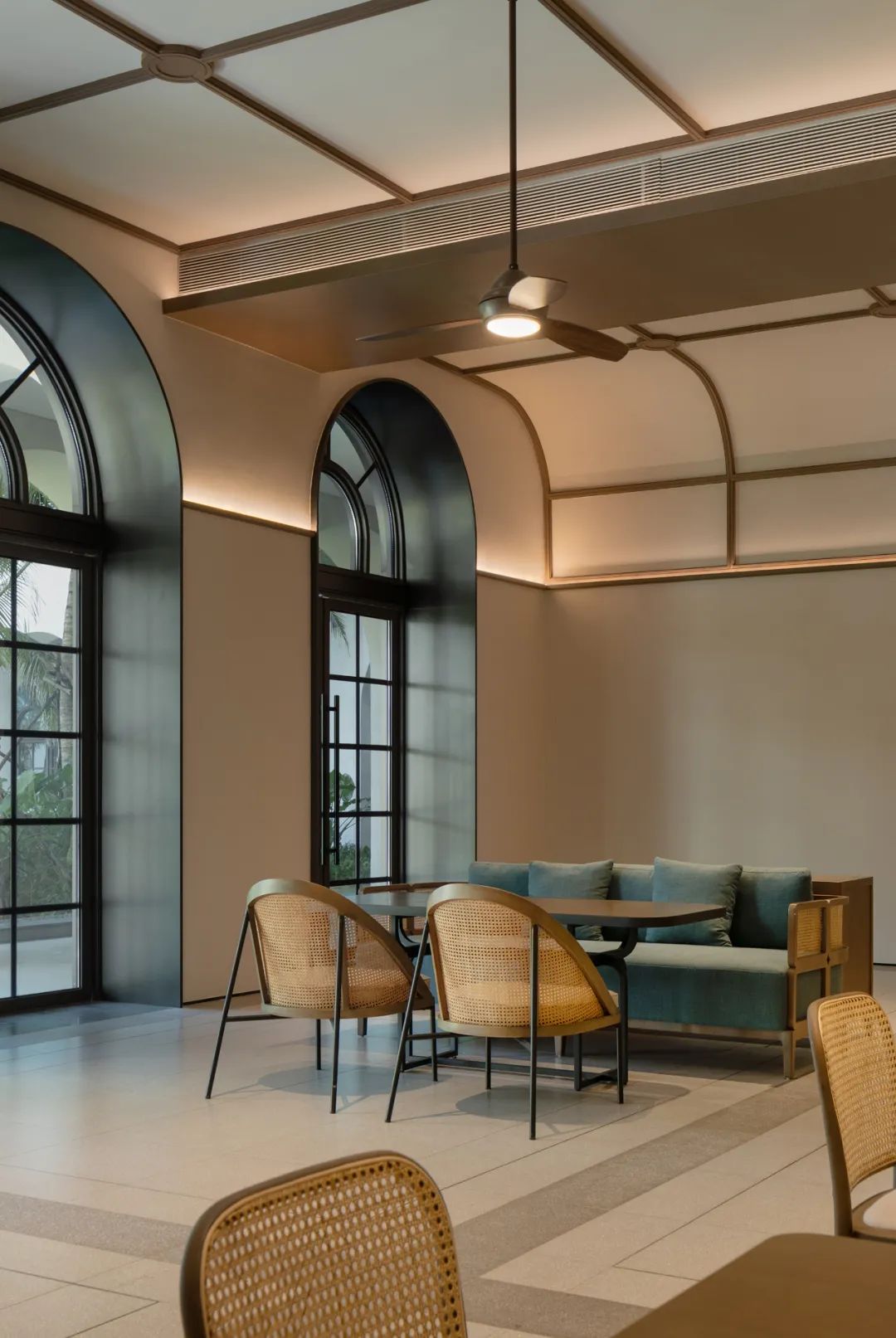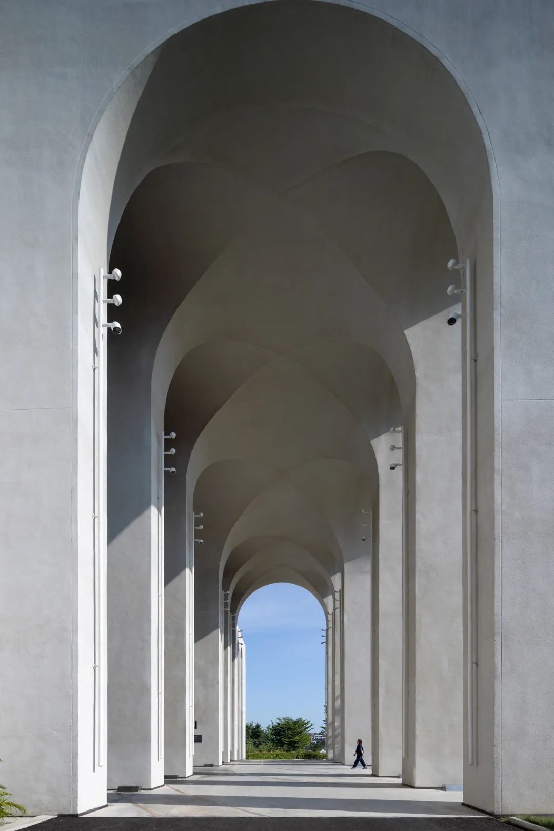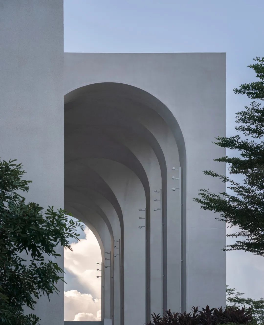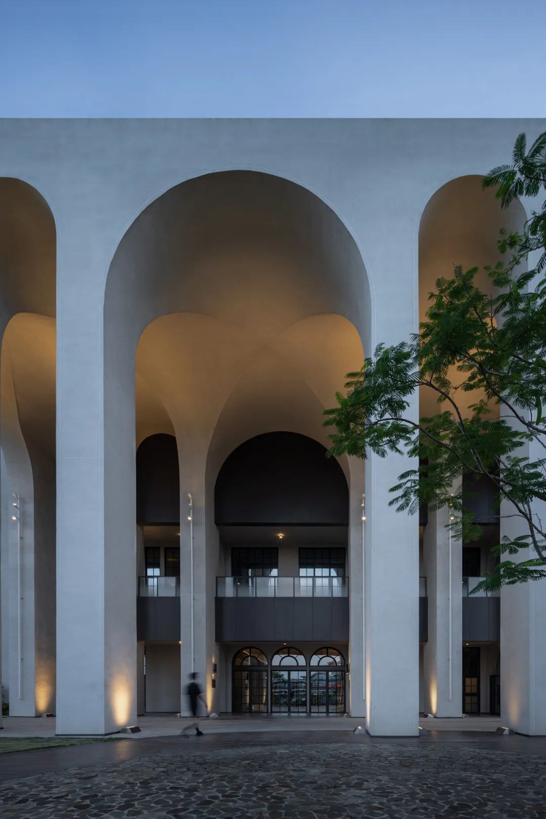 Albert Schweitzer made significant contributions to humanity based on his worldview of respecting life. He also reminds us that life is a sacred gift, and we should always approach it with gratitude and reverence. Hospitals, as places with a profound mission towards life, provide a holy symbol and the utmost space for inclusivity and compassion.融合中国「颐养」的智慧,坐落于海南博鳌的颖奕国际医疗中心,以让更多人享受更高的生命品质为初心。Integrating nurturing into Chinese culture, the ENHANCE INTERNATIONAL MEDICAL CENTER, located in Boao, Hainan, intends to enable more people to enjoy a higher quality of life. ✳︎三层的建筑体中,我们将接待放在2F,人流在此聚集。The reception is placed on the 2nd floor within the three-story building, where visitors are dropped off.Integrate multi-functional meeting space, cashier(Financial Center), and pharmacy on the 2nd floor.包括预防医学及慢性病管理中心、抗衰及医疗美容中心、干细胞免疫治疗中心、女性生育力保护中心、全人类细胞存储库、运动医学及康复中心,提供全方位的疗程服务,反映了其空间设计对医疗专业知识的高度需求。Comprising a Preventive Medicine and Chronic Disease Management Center, an Anti-Aging and Medical Aesthetics Center, a Stem Cell Immunotherapy Center, a Women’s Health and Fertility Wellness Center, a Cell Bank Center, and a Sports Medicine and Rehabilitation Center, it offers comprehensive treatment services, reflecting its high demand for medical expertise in its spatial design.The cell research center, the cell bank center因地制宜|Adaptation to Local Conditions颖奕国际医疗中心选择了在海南这特殊的地理位置,除了必备的专业医用功能,也被得天独厚的南国长年温暖气候包覆。This medical center has chosen its unique geographical location in Hainan, enjoying a year-round warm climate. 在建筑设计上我们以一大体量的围院式三层建筑为主体,围院为中国传统建筑中的智慧,在体量上除了可供医疗中心六大科室的使用需求,也保证了其私密性与充足的自然采光。四方有序而温和的拱形开窗立面,在大型建筑结构中兼容了理性与感性。The architectural design centres around a large three-story courtyard-style building, drawing inspiration from traditional Chinese architecture. This design not only accommodates the needs of the six central departments of the medical center but also ensures privacy and ample natural lighting. The orderly and gentle arched windows on all sides balance rationality and sensibility in this large-scale structure. 而扩大的回廊式的环绕动线,从传统围院建筑中提炼,更适应了海南气候的特性,兼具挡避风雨侵袭、炎阳照射;创造出外、中、内不同的动线层次;分散了各个医疗科室的移动人流,也创造出新的活动区域。The expanded corridor-style circulation system, refined from traditional courtyard architecture, adapts well to Hainan's climate, offering protection from wind and rain and ample sunlight. It creates distinct circulation levels outside, in between, and inside the building, dispersing the flow of people in various medical departments and generating new activity areas.因医疗中心特殊性质,不需要医院典型的分诊功能。室内设计采用大量弧形元素、木质装饰、温暖的色彩、人造绿化等,为所有访客创造了温馨而舒缓的视觉体验。Due to the nature of the medical center, there's no need for the typical triage function of a hospital. The interior features curved elements, wooden accents, warm colours, artificial greenery, and more, creating a welcoming and soothing visual experience for all visitors. 摆脱了传统医院空间中仅有的理性与冷静,我们希望在整个医疗旅程中,我们将中国传统养生智慧的“颐养”理念融入到设计中,以更灵活、更因地制宜的方式,打破既定医院冰冷专业的刻板印象,融入中国南方风情的独特魅力。It moves away from the conventional clinical and sterile appearance. Throughout the medical journey, we incorporate the concept of "health preservation" from traditional Chinese health wisdom into the design. The design concept is flexible and site-specific, breaking away from the stereotype of cold professionalism and incorporating the unique charm of Southern Chinese culture.