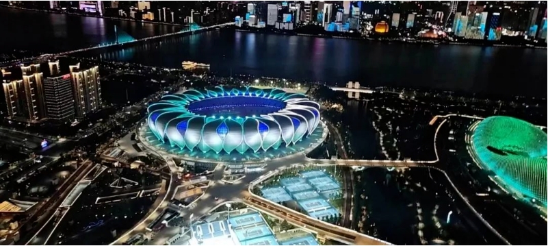 杭州奥体中心网球中心位于钱塘江畔,是国内唯一获得国际网联二星认证的网球场地,选用了数百台ARCTIK炫彩泛光300大功率LED泛光灯,实现了外立面的华丽照亮。