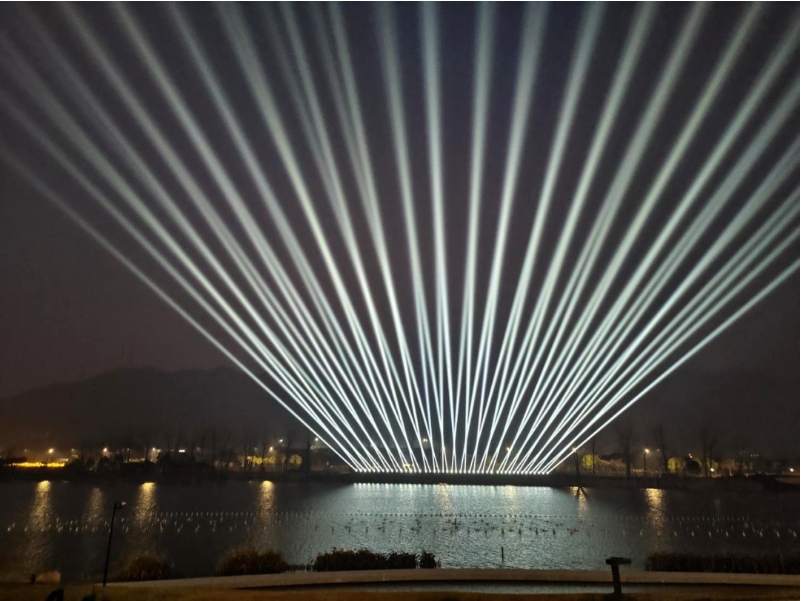 富阳水上运动中心,位于浙江省杭州市富阳区东洲岛北支江南岸,与黄公望隐居地隔江相望?;建筑设计以“山”为形,体现黄公望画卷《富春山居图》“山”元素;景观以“水”为韵,通过流畅的铺装线条体现“水”文化,为杭州第19届亚运会赛艇、皮划艇(静水、激流回旋)比赛场地。迎亚运的亮化灯光秀,选用了雅江光电旗下品牌ARCTIK海王倚天剑L380、海王摇头光束300、海王星云350,其中海王倚天剑L380采用了LEP等离子光源,具有长寿命、低光衰、低能耗、可瞬时启亮无需冷却的优点,50米照度高达83750lux,打造震撼的全场景水上灯光秀的视觉体现。