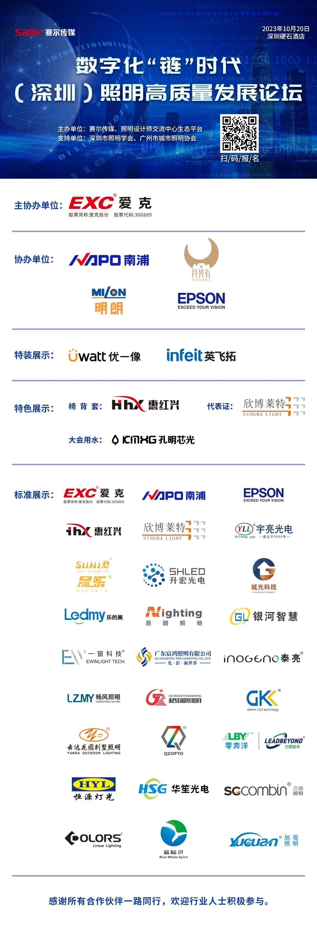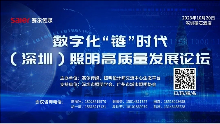 由赛尔传媒、照明设计师交流中心生态平台主办,深圳市照明学会、广州市城市照明协会支持的数字化“链”时代照明高质量发展论坛,将于2023年10月在深圳拉开序幕。届时行业大咖、业界精英将齐聚现场,以论坛交流带动照明行业深入互动,展示特色、展现精彩,促进融合发展。
