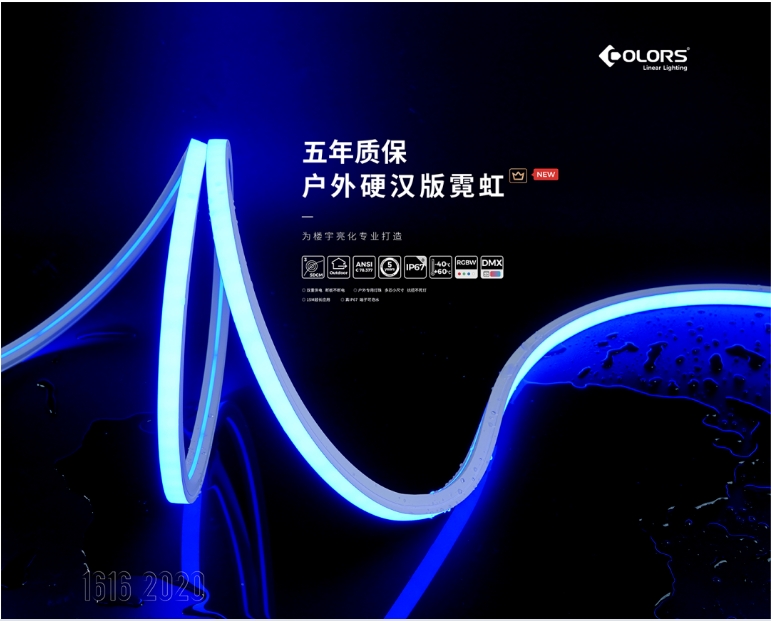 ● 展示特色:新品户外金标霓虹:专为楼宇亮化打造,双重供电,端板不断电, 户外专用灯珠,多芯小尺寸,抗扭不死灯, 一体防拉工艺挤出,对抗内应力外拉力,超长使用, 华彩全面在户外领域重点发力。