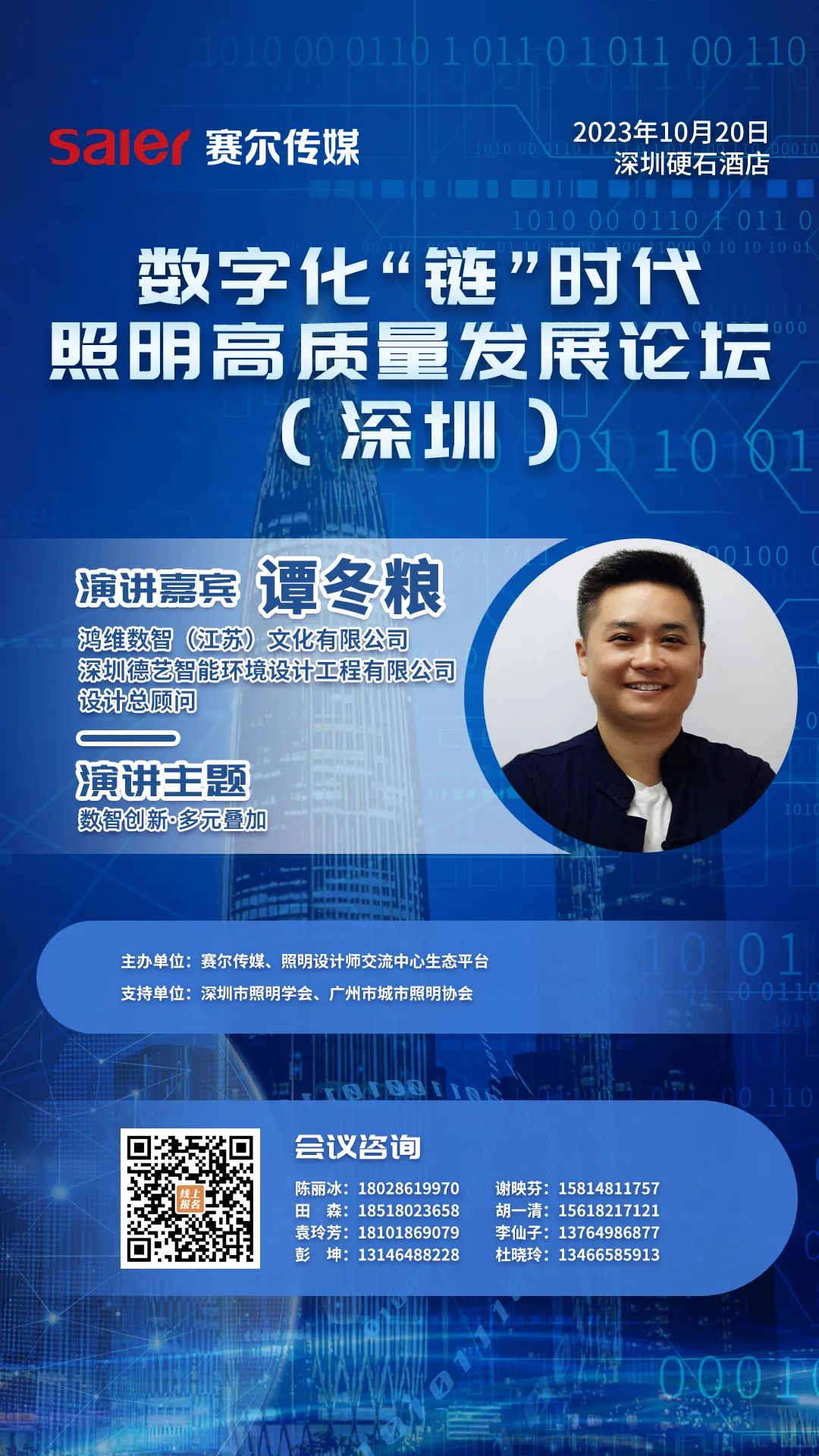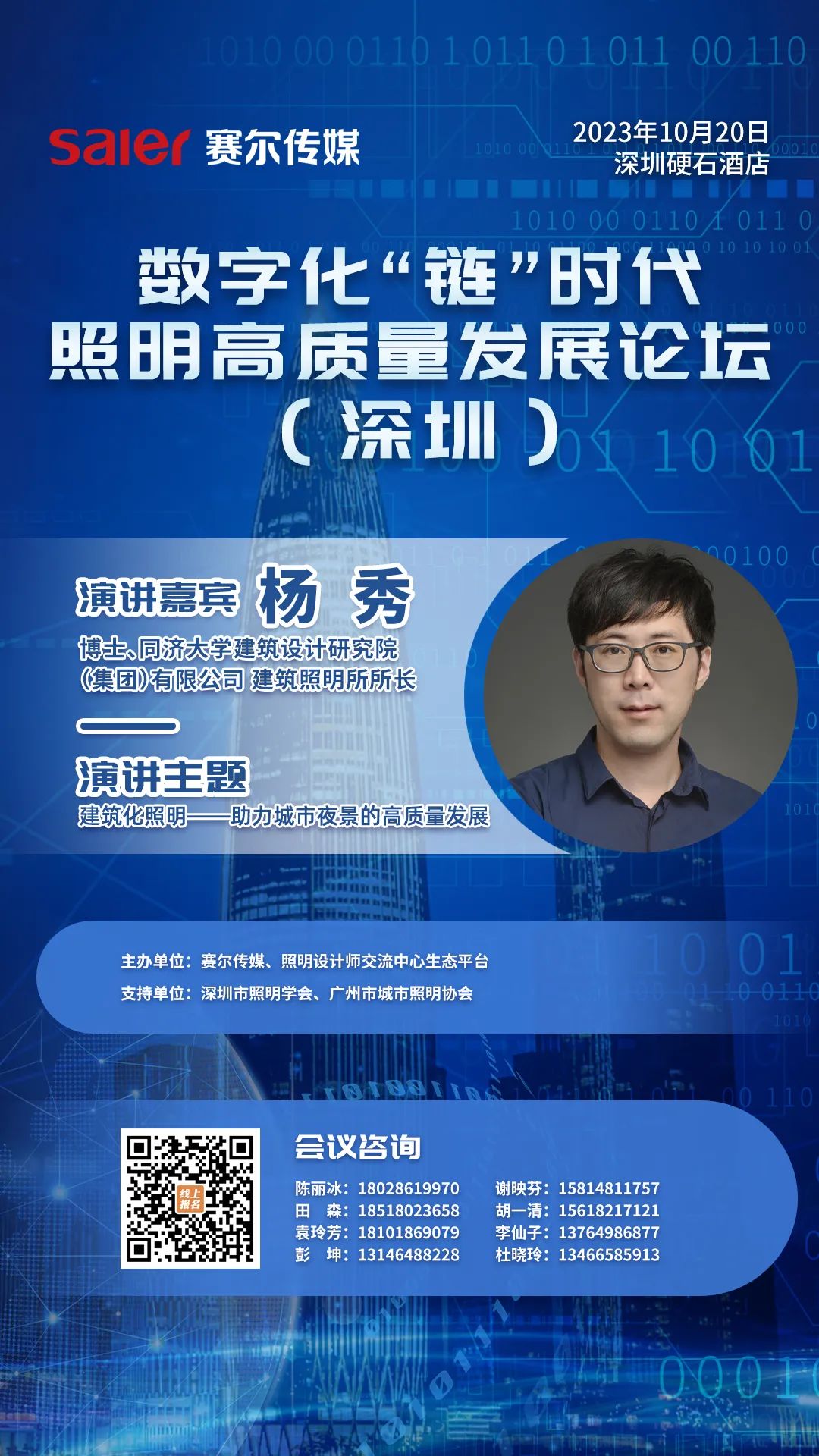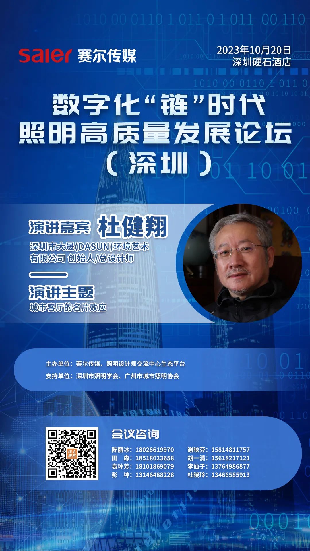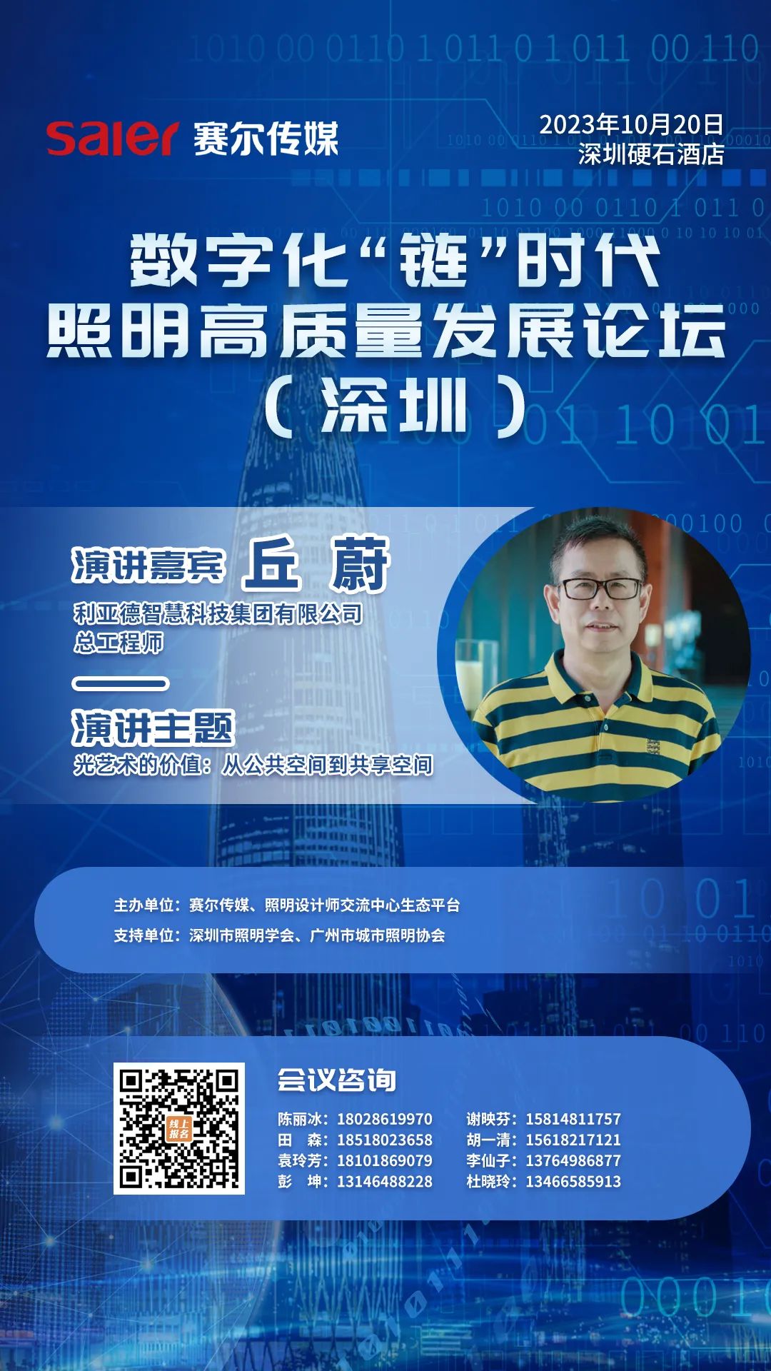 由赛尔传媒、照明设计师交流中心生态平台主办,深圳市照明学会、广州市城市照明协会支持的数字化“链”时代照明高质量发展论坛,将于10月20日在深圳举办。