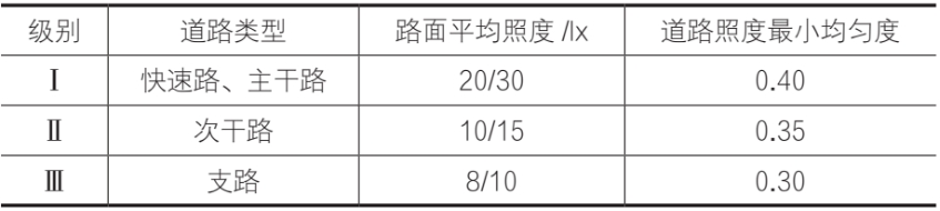 表1 交通道路照明标准值