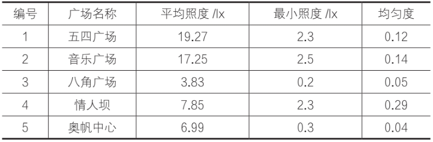 表4 调研广场水平照度