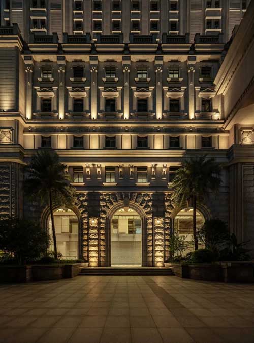 ▲柱廊部分为迎宾门面,用光表现气势与空间。