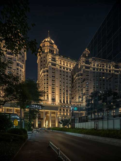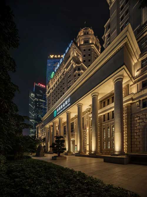 ▲沿城市主干道的建筑体在夜晚也雍容大气,成为街道景观的重要部分。
