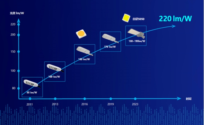LED路灯代替传统路灯,是城市照明的一次革命,实现了能耗的大幅降低,特别是随着技术的进步,光效地不断提升,节能效率不断提升LED路灯在绿色节能方面取得了显著的进步,华普永明也为此做出了很多技术贡献,例如开创并主导了模组化技术路线,例如发明了高光效路灯的主流芯片5050。