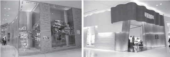 商业展示空间设计是以科学性功能为基础,注重艺术表现形式,通过各种手段综合提升审美视觉,促进商业交流和营销的设计活动。在一定条件下,光才能塑造空间。光能对商品产生不同的艺术效果,一方面光可以塑造事物的外部形体,另一方面光可以营造事物的内部空间氛围(见图3)。