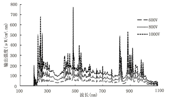 图2 脉冲氙灯的光谱功率分布
