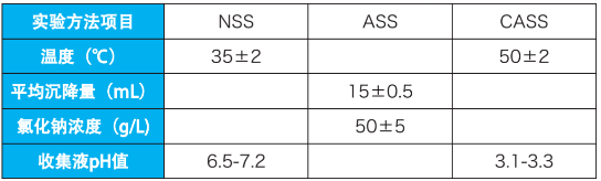 (c)铜盐加速醋酸盐雾试验(CASS):近期发展的快速盐雾试验。腐蚀速度约是中性盐雾的8倍。主要用于镍组合镀层的抗蚀性能检验。