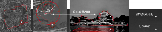 图8 凤城河灯光戏台规划及核心观赏界面说明图
