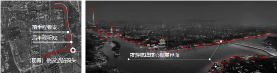 图10 凤城河夜游航线规划及核心观赏界面说明图