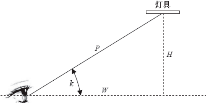 眩光评估用的统一眩光指数UGR(Unified Glare Rating)的计算示意图如下: