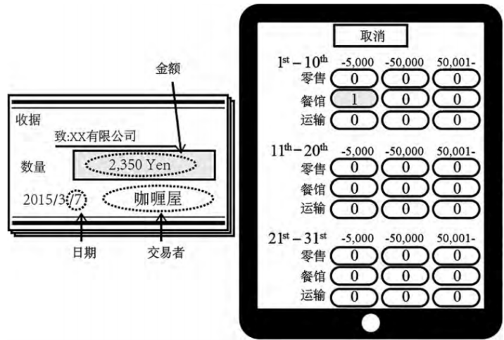 图2 分类收据(左)和输入结果的界面(右)(图片来源:文献[21])