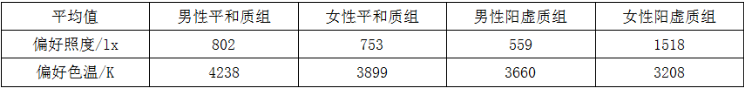 表2 各被试组偏好光环境参数表(表格来源:文献[30])