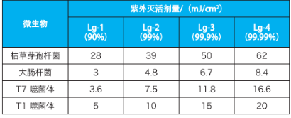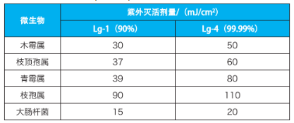 表2 不同微生物被杀灭所需的紫外剂量[15]