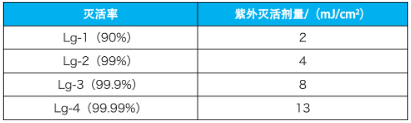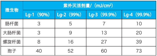 表1 不同微生物不同灭活率对应的紫外剂量[13]