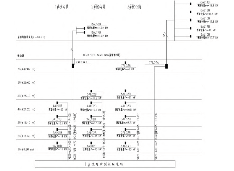 图11#~3# 核心筒泛光照明配电干线图