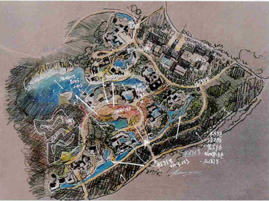 公共空间的节点主要有入口广场节点、山泉夜虹节点、云海观湖节点、明湖映景节点。
