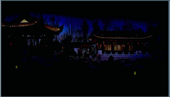 利用灯光本身的特殊魅力为园林景观的夜间场景增色,同时也要注意谨慎地使用灯光照明设备,以免影响昼间园林的样貌。城市展园主要是古典园林风格,视觉上以传统园林氛围为主导,灯光布局的原则也要以此为出发点,用现代的照明手段,实现略带古典园林诗意化感观的场景是设计的追求目标。单独依赖灯光发挥作用的比如灯光秀或投影表演等,还需要有更深入的创作。