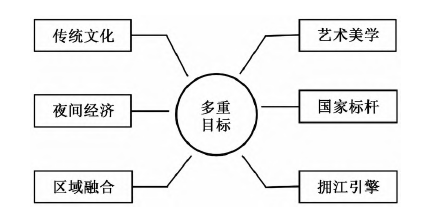 浙江省委明确梅城美丽城镇的目标是打造全省美丽城镇样板和全国美丽城镇标杆,根据这一总目标,梅城夜景照明工程将承担着重要的使命,有着多重的目标导向(图3)。
