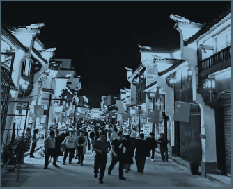 (5)在动静结合上,要突破传统思维,大胆尝试用色彩运用与光色变化或投影的“动”给古城带来的活力,让古城既有典雅的“叫好”又有活跃的“叫座”。但在“动”的区域选择上要推演研究,尤其要考虑声光电对周边的环境影响和集散面。同时,在动静比例上要合理控制,让“动”起到点睛与升华的效果,不可因追求人气而破坏古城“雅”的格调;