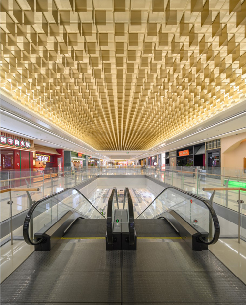和外立面一样,室内也有非常多的特色天花系统,包括风铃片、金属网、立体吊顶及镜面不锈钢吊顶,由于室内对吊顶净高要求很严格,留给照明设备安装的空间很局促,多样性的材料与灯光的磨合匹配,对照明调试工作提出了很高的挑战。