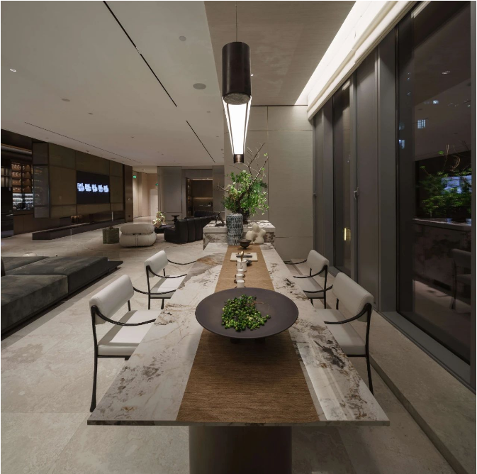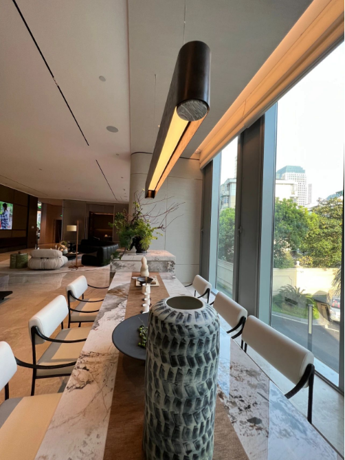 绿城秉承绿色健康、如意生活的理念与我们一直倡导的人本照明、健康照明不谋而合。在该项目中,我们将减法设计理念贯彻到底,用最少的灯具营造最好的空间光氛围,依托空间设计语言,以简约纯粹的灯光让空间回归本质,展现其质感和氛围。