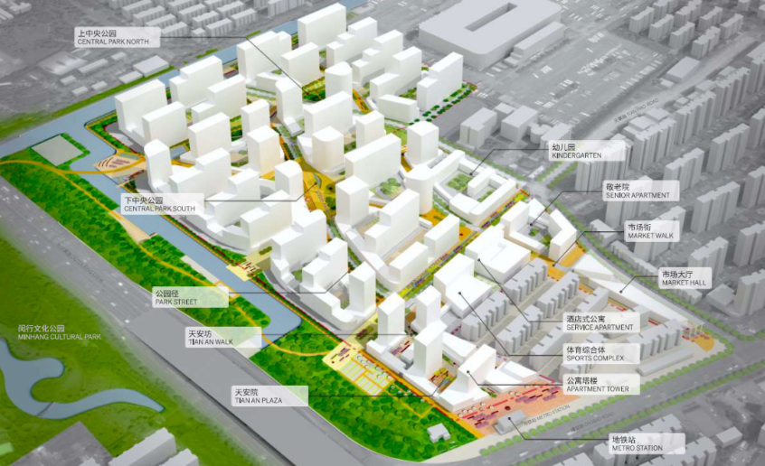 天安1号占地17.9公顷,是位于上海市闵行区的复合开发项目。项目周边开放空间和自然资源丰富。规划了约2200户高端住宅、会所、商业广场、养老中心、体育中心、商业中心、幼儿园和雨林市集。旨在建立一个将生活方式、建筑、城市规划和生态完美融合的新型社区。