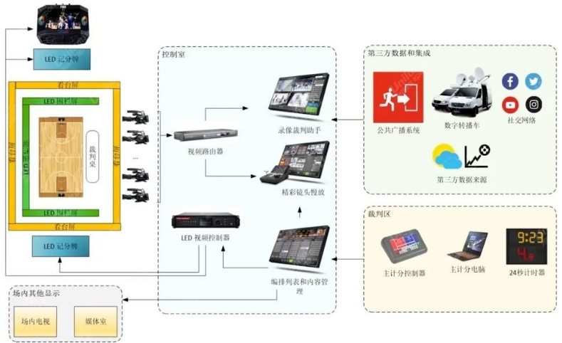 除完备的LED硬件设备外,洲明整合了计时记分系统、比分直播系统、24秒计时系统(篮球)等,满足比赛信息显示、多媒体信息展播、现场直播转播、比分叠加、球迷互动体验等多功能需求,提升赛事服务品质。
